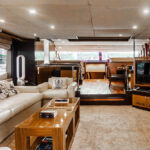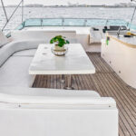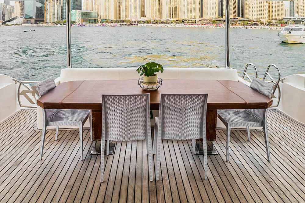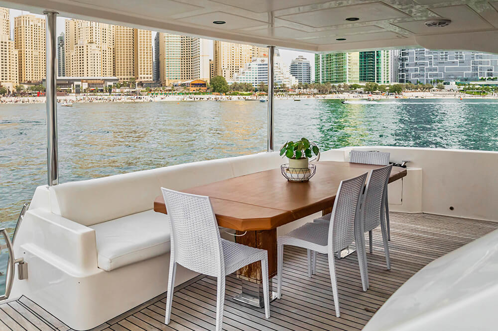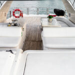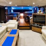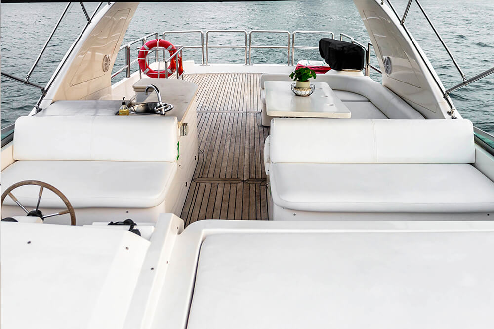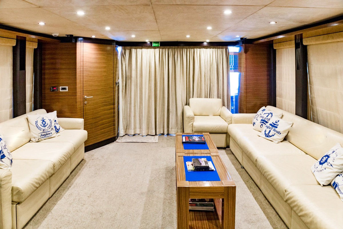 For those who want to live the life at the sea to its fullest, Majesty 77 is surely the right choice. The attention to details in the main salon makes the yachtsmen feel like entering a whole new world surrounded by deep blue sea. Her 4 guest cabins generously accommodate the guests for an overnight adventure. Her large crew cabins lie adjacent to a fully equipped galley. The huge flybridge offers ample dining as well as sun tanning space besides containing barbecue grill and jet ski. The atmosphere is rich and cozy boasting exclusivity.