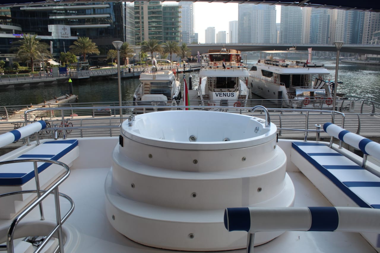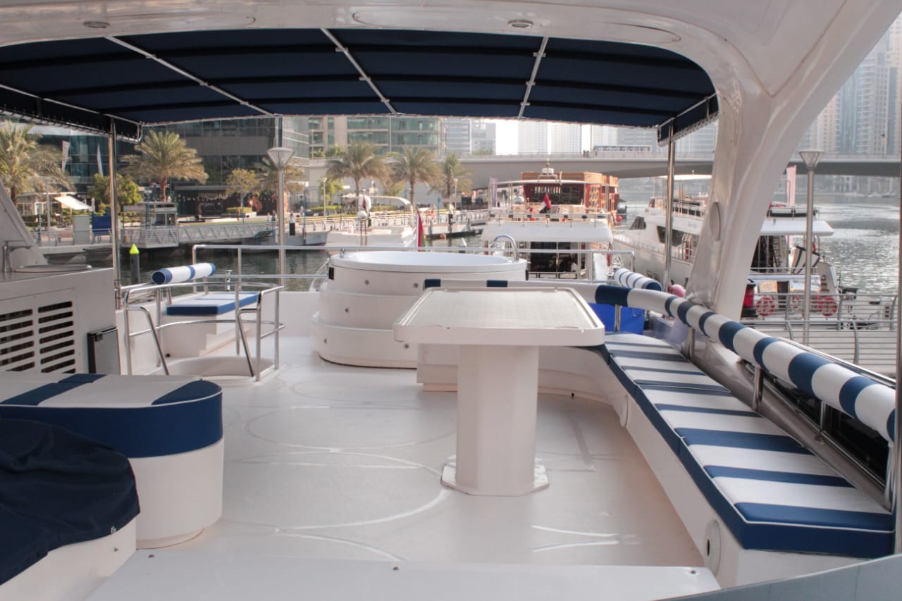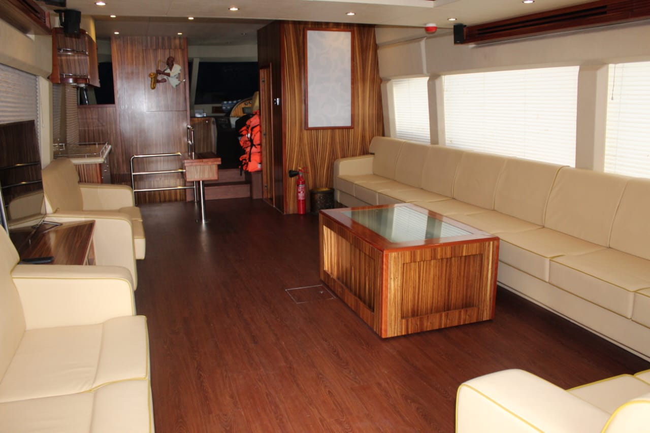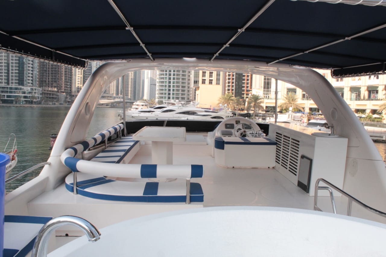 Guests can bring their own food Alcoholic Beverages are allowed on board but we do not serve them ( *EXCEPT during RAMADAN or declared DRY PERIOD)* Loud Music not allowed during Ramadan Swimming is allowed for minimum of 2 hours booking (up to 6pm only) _NOTE: additional of *AED 200* if the guest requested assistance to the crew to cook he BBQ or you can give them a good trip.
