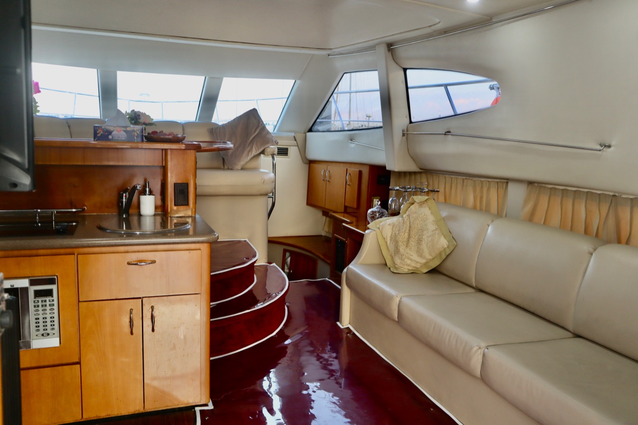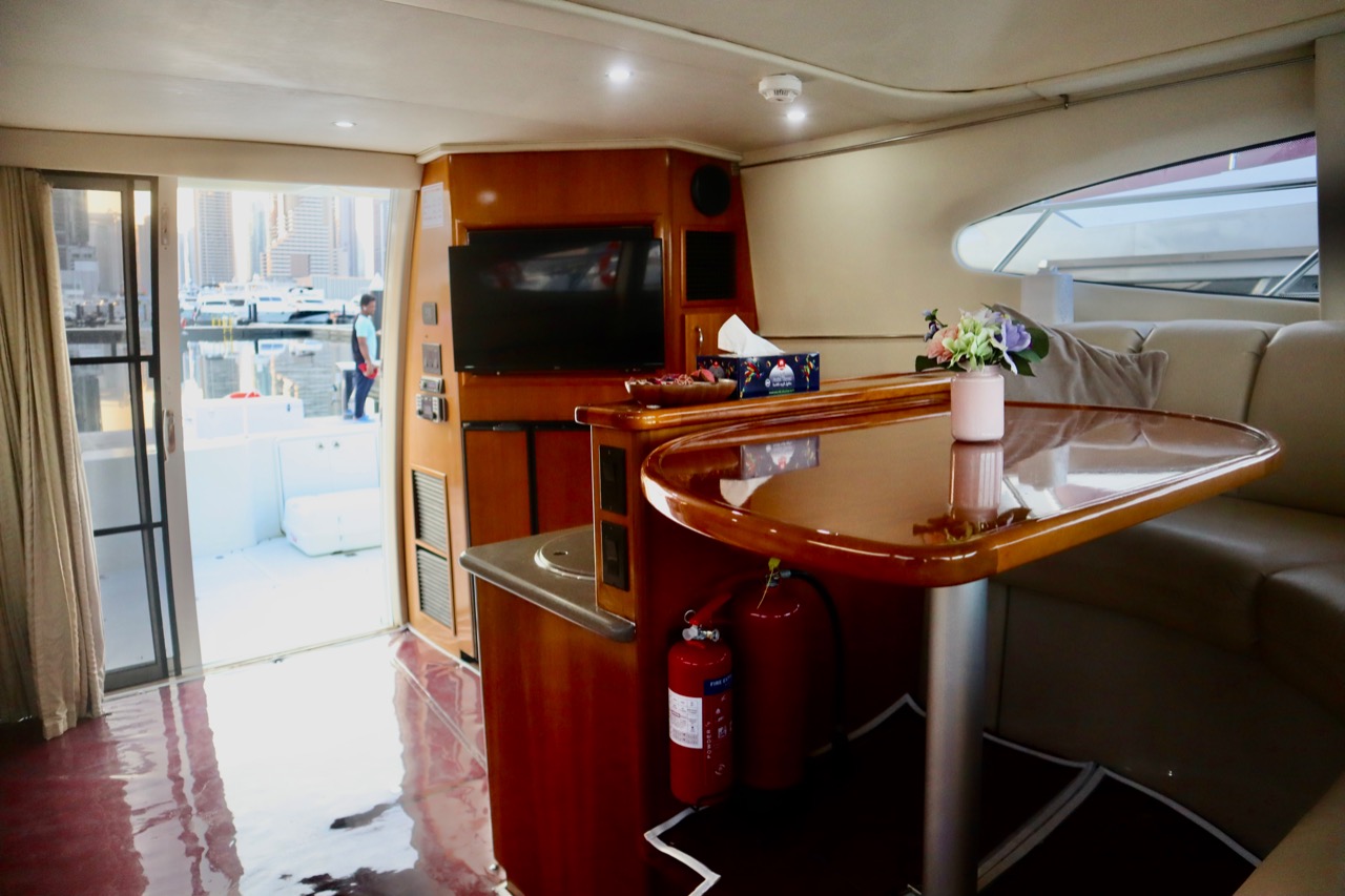 With a length of 42 feet she has a wide beam which gives the boat huge space and more volume. She has the capacity to cater up to 12 people in pure comfort. For added convenience, she comes with a fully equipped kitchen.